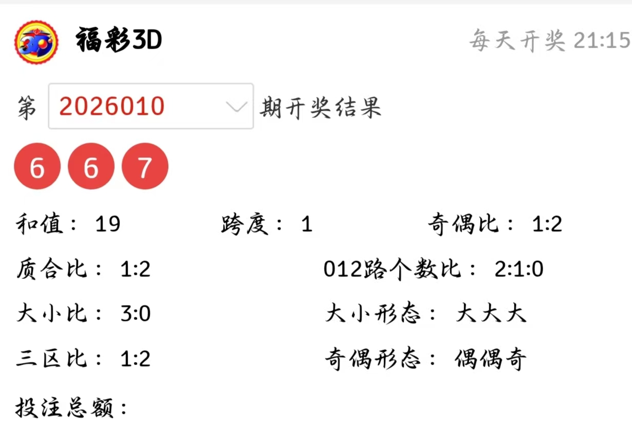 各位友友们大家好,我是博学说彩!每期给大家分享关于数字彩的我个人分析,常言道“命里有时终须有”,个人见解仅供参考!本文给大家分享的是福彩3D第2026010期开奖号码个人分析,若觉得有用请记得关注哦!