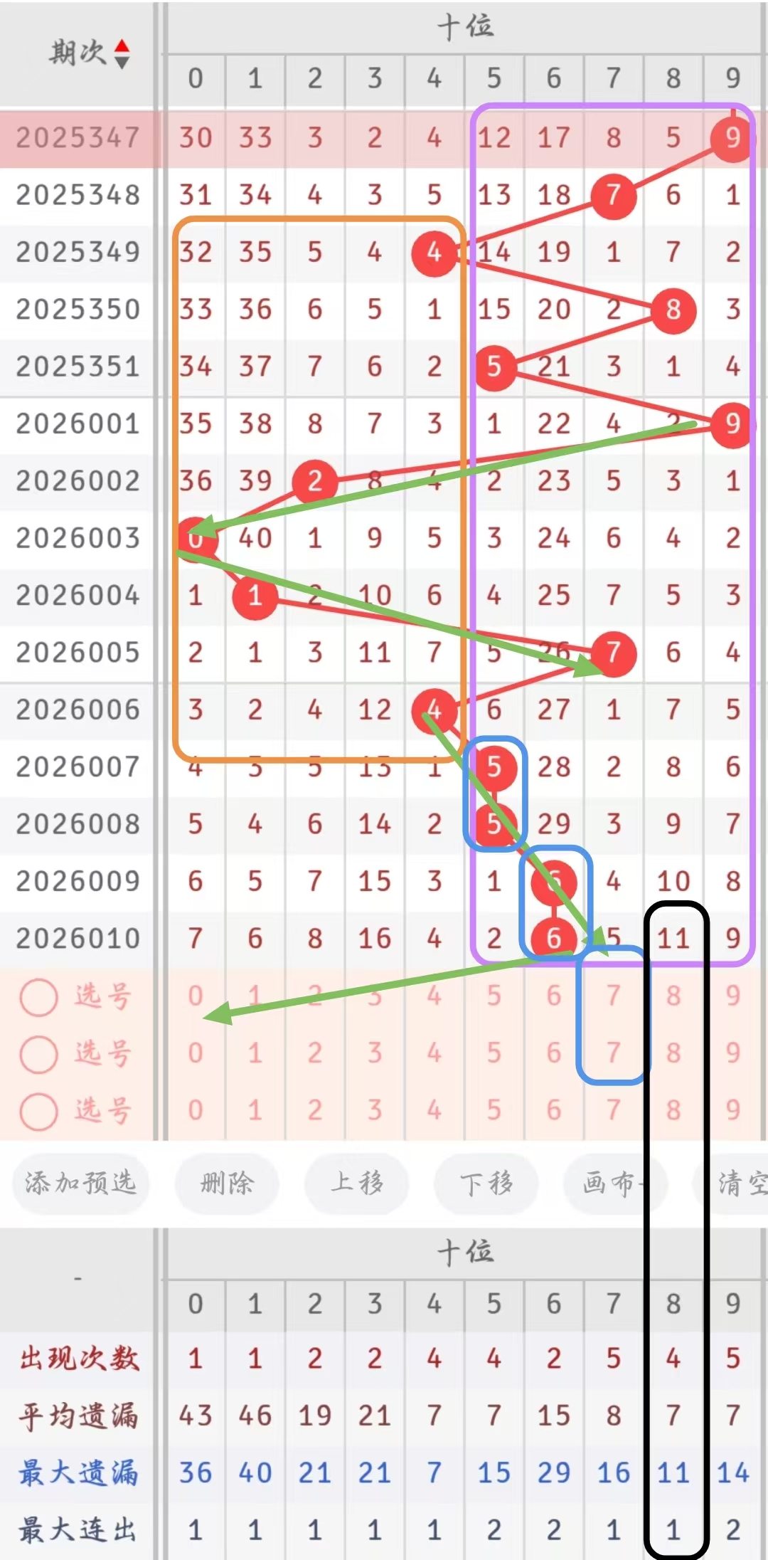邻号:与上期开奖号相邻的号码,例如:上期开出17则邻号16、18