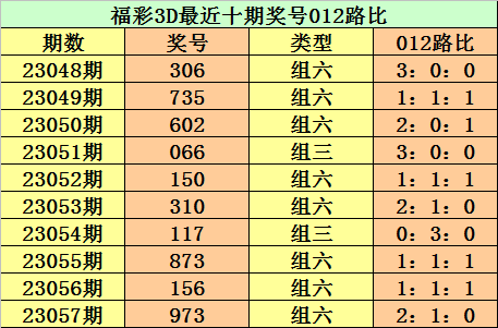 开奖回顾:第2023057期3D奖号为973。形态:组六,奇偶比3:0,大小比2:1,012路比为2:1:0。