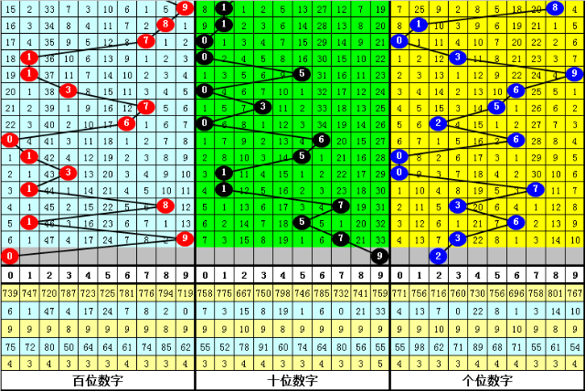 百位推荐:近10期出现5个0路号、4个1路号、1个2路号,0路号大热,2路号走势低迷。本期注意0路号,关注号码0、3、6、9。