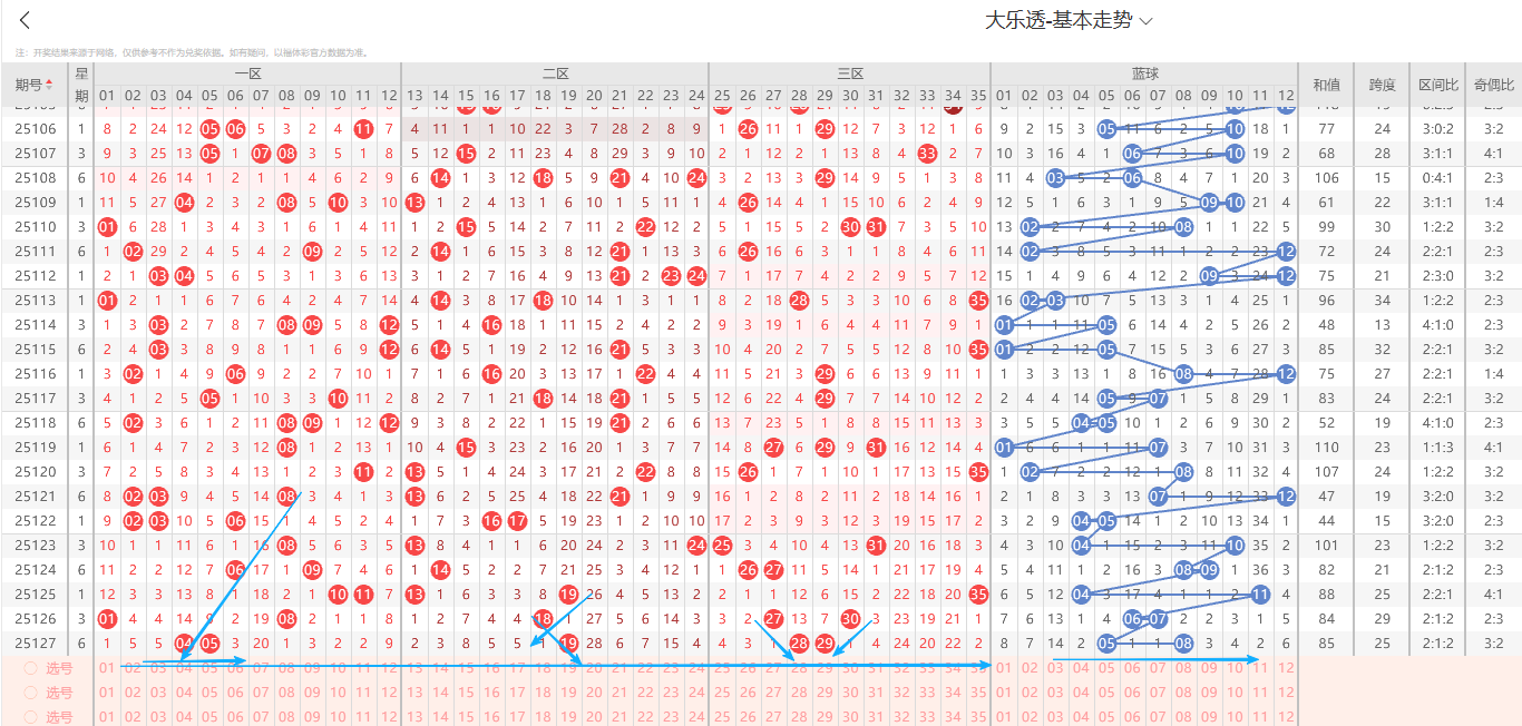 ③和值:结合对区间的比例数据来看本期和值参考74~110范围参考