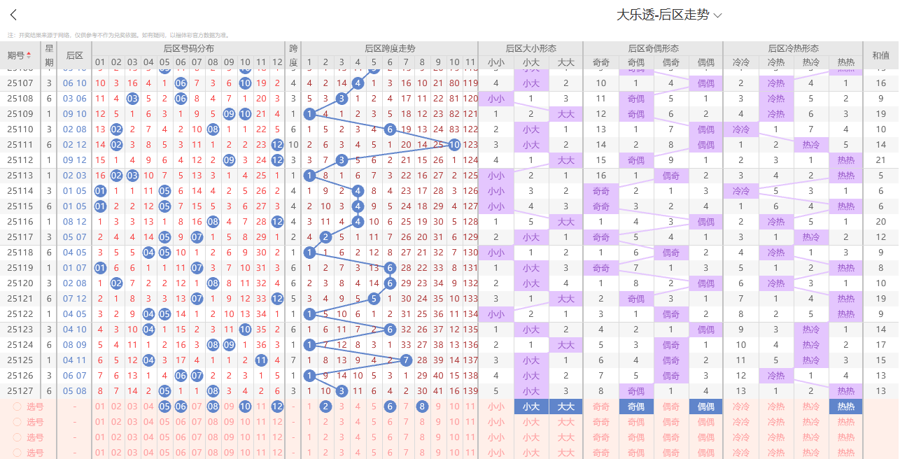从后区整体走势来看在大部份开奖结果中频繁有重码或者邻码的开出,根据重码邻码出号频率本期预防04 05 06 07 08 09中有号码落下。综合后区本期参考关注05 06 08 10 12。参考为主祝君中奖。有关更多选号思路详细解析下午15:00直播间不见不散!!!