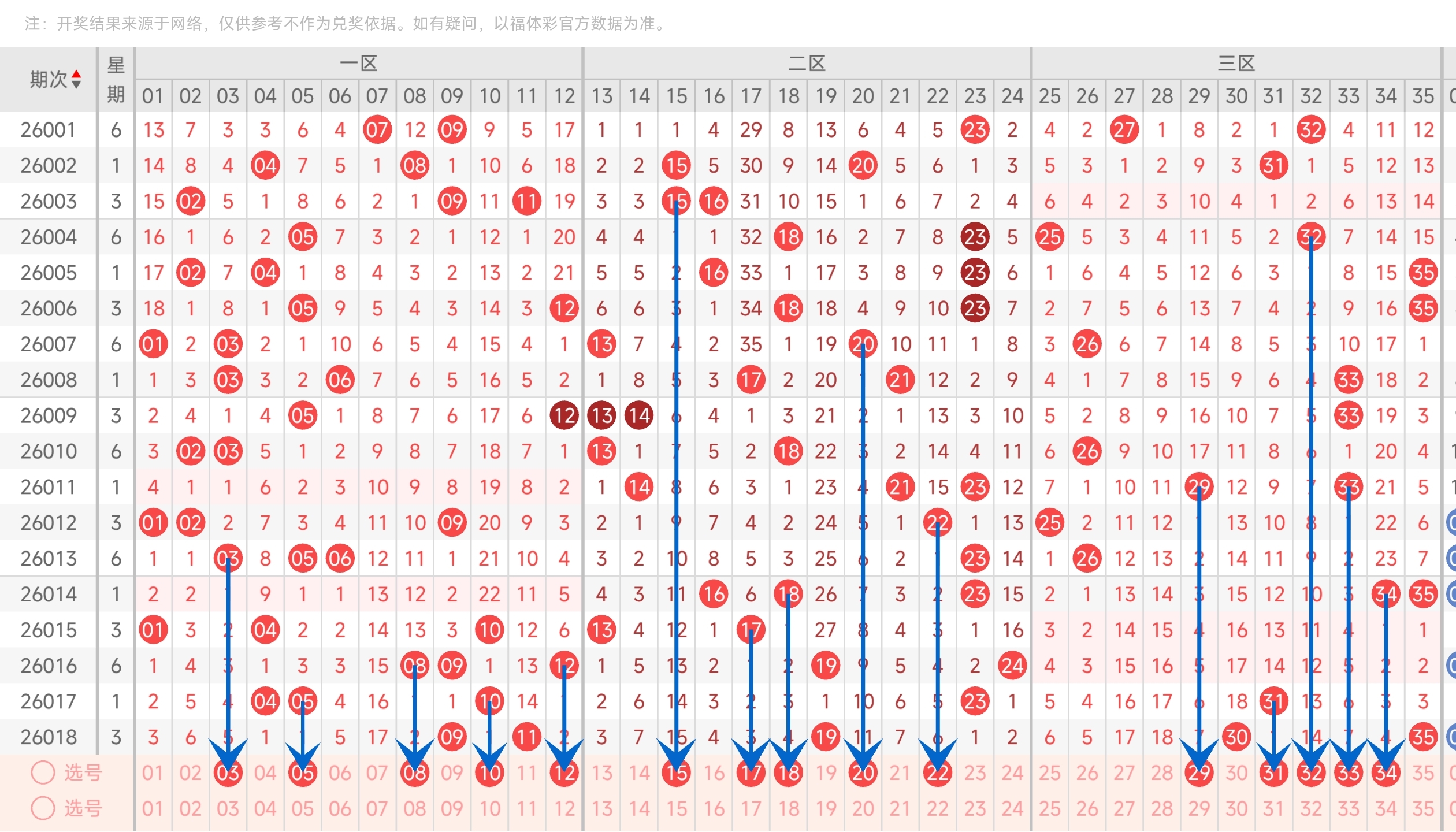 第26014期大乐透文章推荐中命中18,34,35等3个红球,蓝球6。