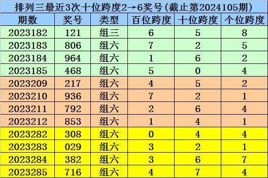 开奖回顾:第2024105期排列三奖号开出210,奖号奇偶比开出1:2,012路比开出1:1:1,跨度为2。