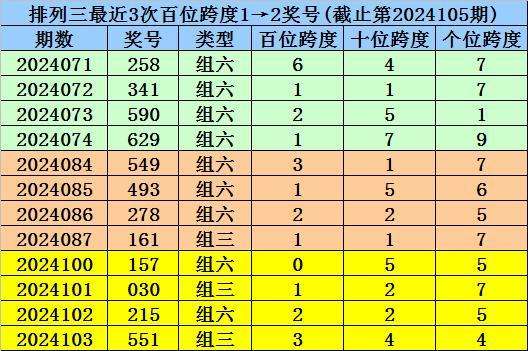第2024100-第2024102期奖号:157、030、215,其下期奖号为:551,首位号码跨度为3;