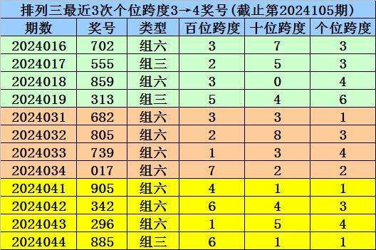 第2024041-第2024043期奖号:905、342、296,其下期奖号为:885,末位号码跨度为6;