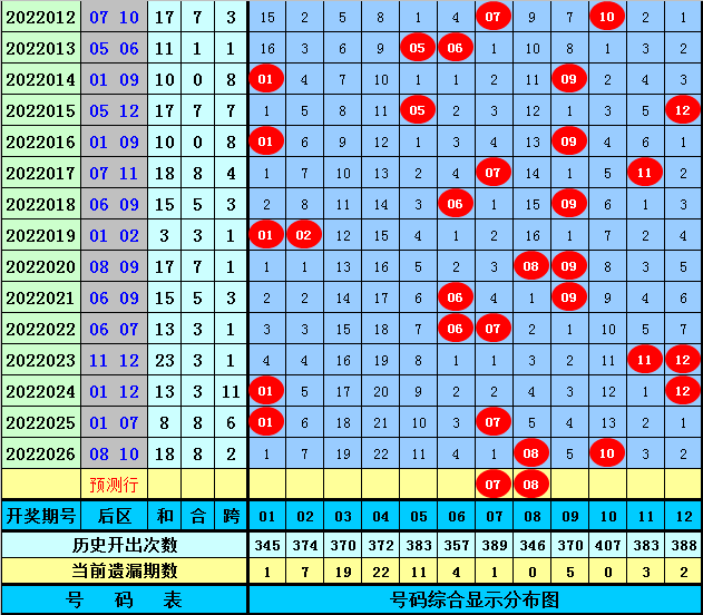 后区分析:上期后区奖号为08和10,最近5期后区和值分别为13、23、13、8、18,后区跨度分布范围在1-11,本期后区注意两码07、08。