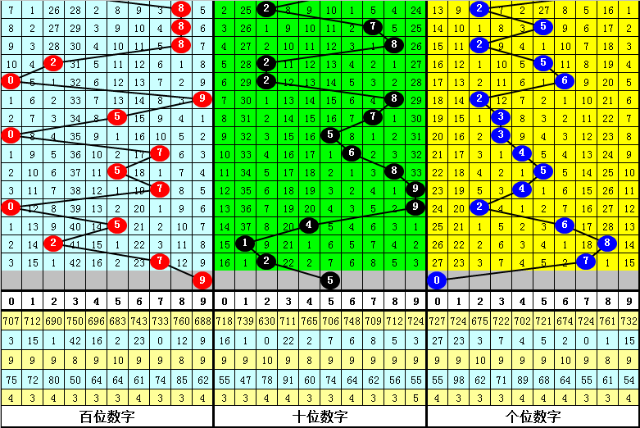 百位号码:第22055期-22059期奖号为:7-0-5-2-7,振幅为7点,分布较分散,本期预计百位走高,关注号码9。