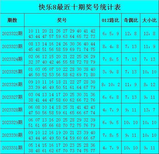 玉苍快乐8第2023332期奖号012路分析(定义:03、06、09……为0路号码,01、04、07……为1路号码,02、05、08……为2路号码)
