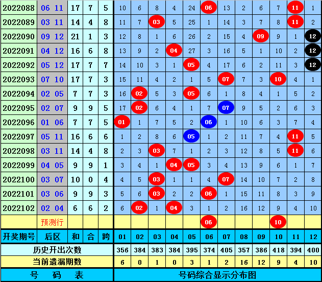 后区第一位推荐:在连续5期开奖中分别出号:03、04、03、03、02,均值为3。0,其中偶数奖号出现较少,本期适当关注偶数号码回补,参考号码06。