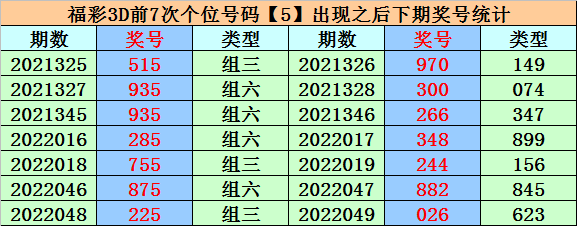 在百位号码5前7次开出之后,其下期分别开出号码:4、1、5、6、7、0、0,其中号码大小比为3:4,012路比为3:3:1,奇偶比为3:4。