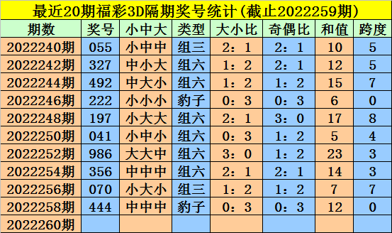 奖号类型判断:近期周二组六开出较少,上周二为组六,组三出现较多,本周二重点关注组六号码。