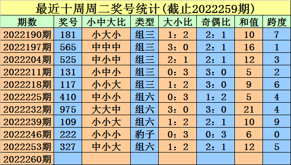 奇偶分析:最近五周二号码奇偶比为8:7,基本相当,上周二偶数开出1个,本期看好偶数号码火爆。