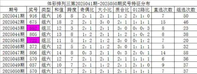 开奖公告:体彩排列三第2025050期开出奖号:570。组六,有重号:0、7,奇偶比2:1,大小比2:1,012比1:1:1,和值12,跨度7。