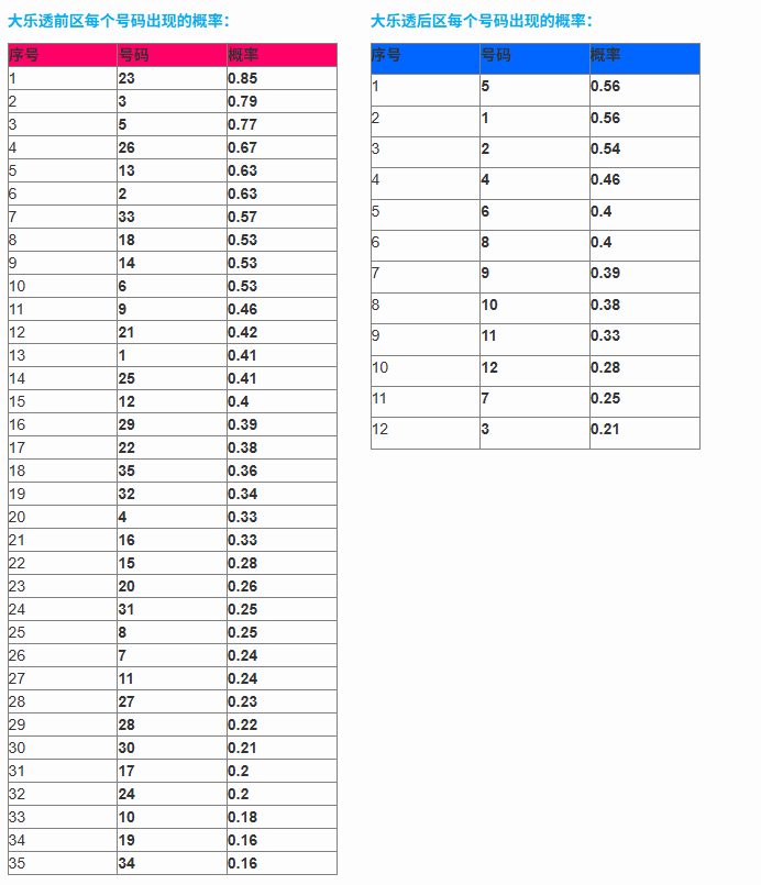 大乐透算法各类号码分布图