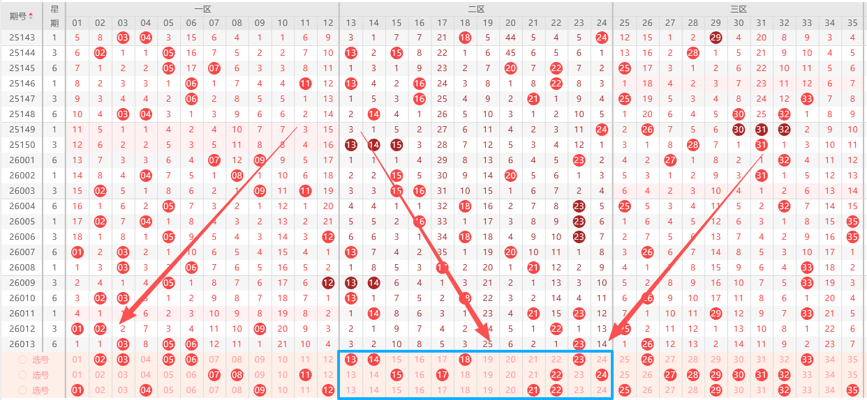 本期3区号码,总体分析如下(蝴蝶根据概率算法,结合大数据统计,总结出一套不错的算法,总体的3区分析如下):