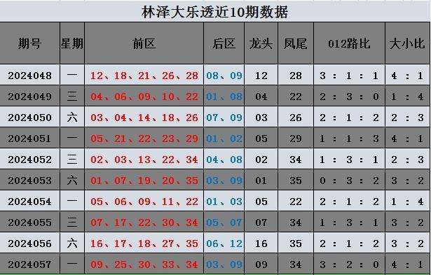 058期林泽大乐透预测奖号:头尾分析和012路分析