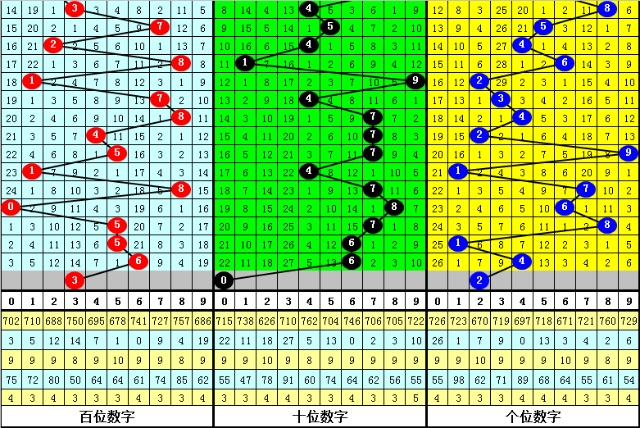 在历史同期号码中,组选0-9号码出现次数为:0出现2次,号码6出现3次,号码4出现4次,号码5出现5次,号码2、8出现6次,号码7出现7次,号码3、9出现8次,号码1出现11次,本期看好两码2、3出现。