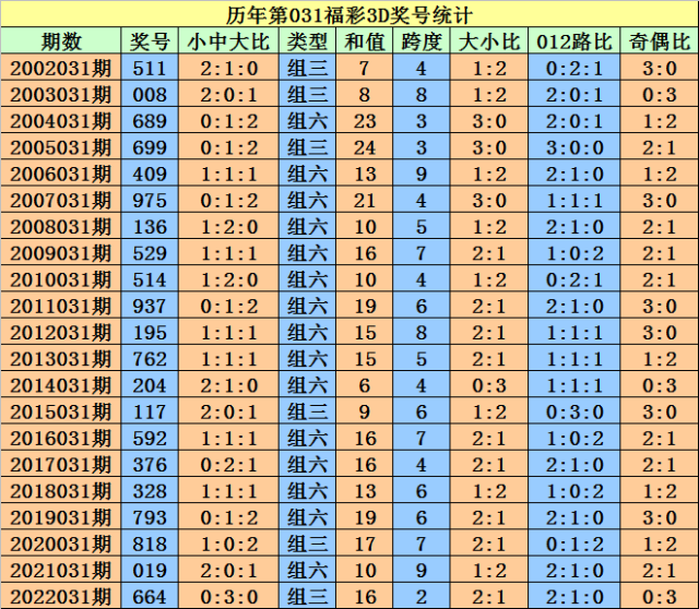 开奖回顾:福彩3D第2022031期奖号为:664。