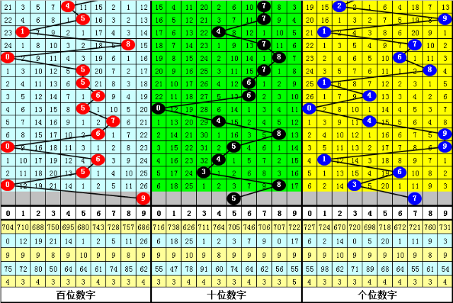 百位:上期开出号码0,遗漏2期,目前该位遗漏最大的号码为9,遗漏26期,本期防止号码9解冻。