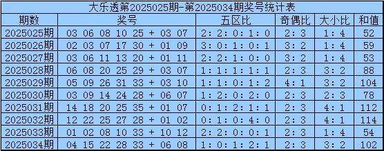 大乐透第25034期奖号为:04 15 22 28 33 + 06 08。