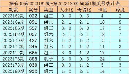 其中大小比3:0,奇偶比2:1,和值18,跨度2。