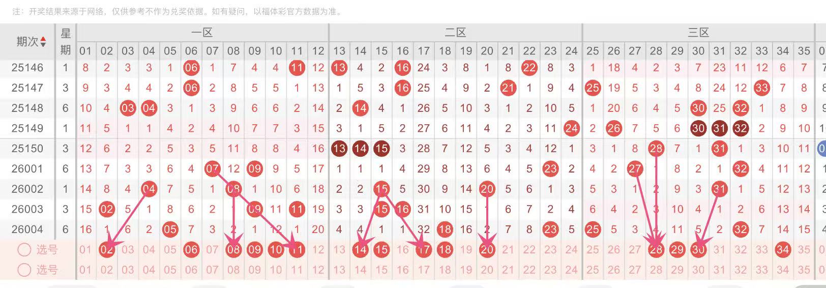 第一组:红球重号上期轮空,本期注意重号转冷,防轮空。