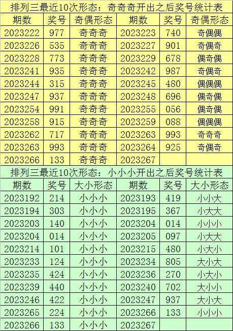 开奖回顾:体彩排列三第2023266期开出奖号:133。奖号基本特征为: