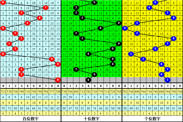 百位:上期奖号为:3,该位小号近期明显活跃,上期开出重号,本期预计该位上升,参考号码9。