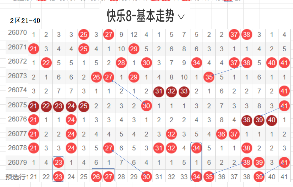 二区(21-40):遗漏5期以下有16个,0码23 38 39 3个,数据所示,冷码平均,选择条件增多了.上期开出了3个号码,出码比较集中.这期布防相应增加,重码按比例落这区较少,先给出关联码35,这个区间间接走势,温区,21-30区间上期开了1个,依旧不是重点选号区间,31-40区间开出2个,本期关注热码的回补,间隔小遗漏值最佳,3字头转热,这个小区热码注意回调,可以做关联码的布局,注重温冷码的回补.