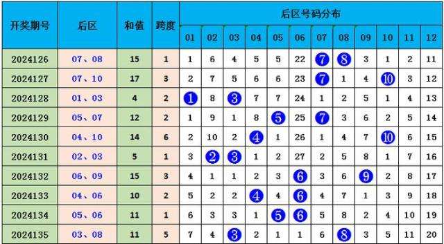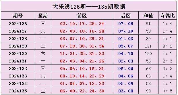 大乐透第2024135期出奖号统计:前区06、08、22、24、30,后区03、08。和值为90,奇偶比0:5。
