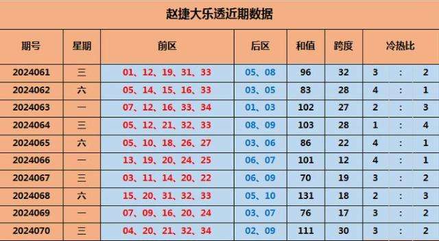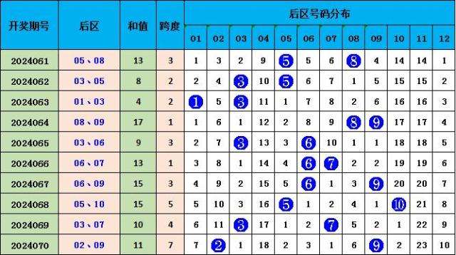 近10期,前区和值范围在70--131之间开出,近十期和值的平均值是95。9,上期开出奖号和值为111,本期预测和值不变,推荐和值在111左右。