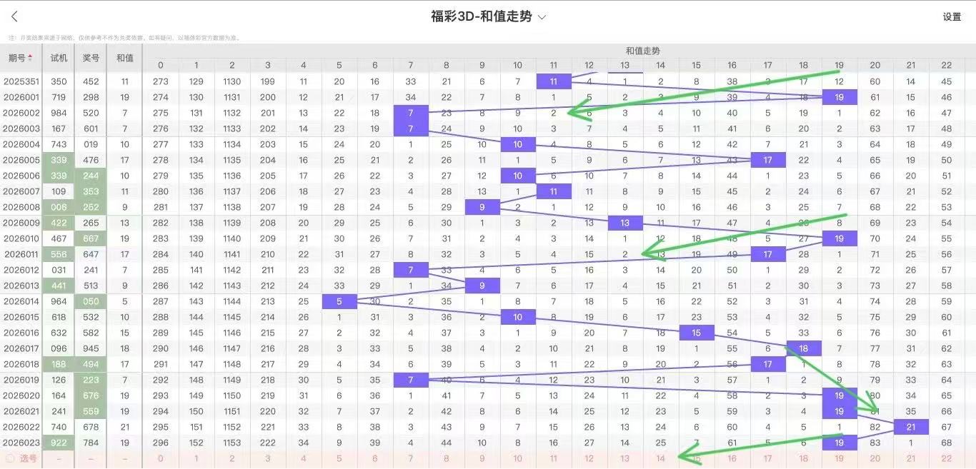 2026024期福彩3D和值走势图如下: