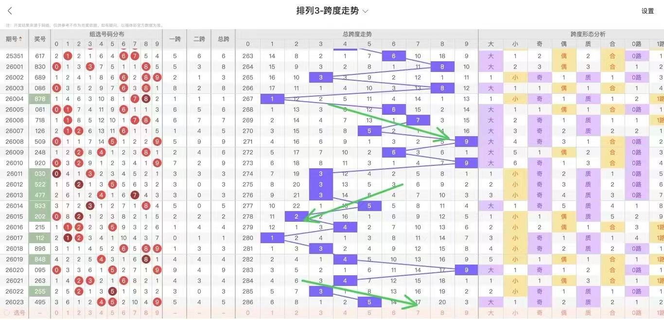 根据走势对跨度观察统计得到以下分析结果: