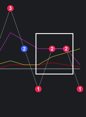 可以看到一些规律,在白框中,如果一致,那么接下来这些跨度也会出。