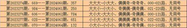 在排列三历史开奖中,第2023274期-第2023278期连续5期奖号为:669-984-606-028-070。
