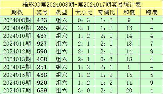 其中大小比3:0,奇偶比2:1,和值20,跨度4。