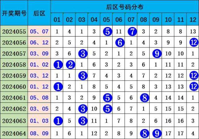 大乐透第2024064期出奖号统计:前区05 12 21 32 33,后区08、09,和值为103,跨度28,龙头05凤尾33,三区比为2:1:2,012路比为3:0:2,奇偶比为3:2,大小比为3:2,冷热比为1:4,2枚重号,1组连号。