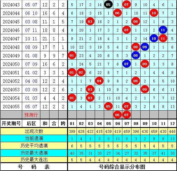 开奖回顾:体彩大乐透第2024055期奖号为:07 17 22 30 34 + 05 07。前区号码奇偶比2:3,大小比3:2,012路比为1:3:1。后区号码和值12,跨度2。