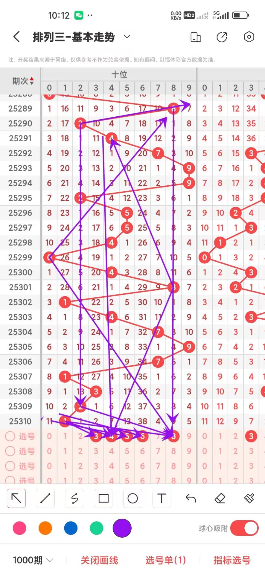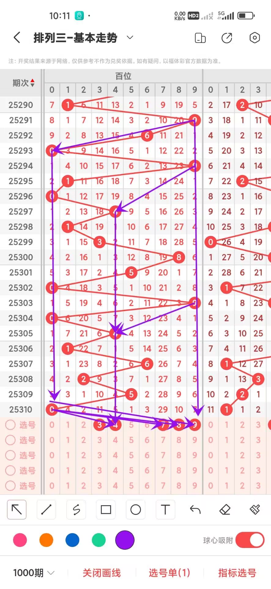 2025311期,上期十位开出奇数1,我们从1000期,走势图来分析0-9分别开出多少次,目前0开出96次,1开出102次,2开出107次,3开出102次,4开出106次,5开出90次,6开出77次,7开出107次,8开出111次,9开出102次,通过1000期走势我们可以看出目前十位06走势下号最少。012路2路号比较少,走势稍微低的冷号是056,在从平均遗漏方面看。0遗漏10次,1遗漏9次,2遗漏8次,3遗漏9次,4遗漏9次,5遗漏10次,6遗漏12次,7遗漏8次,8遗漏8次,9遗漏9次,通过1000期平均遗漏我们可以看出目前0-9在遗漏方面差别不大没有太大的遗漏,通过上面的1000期的走势可以看出012路1里号码走势比较热我们可以关注下,目前在冷号阶段的是056可以作为防守,十位重点关注热号,防冷号回补,十位上继续看好热号,具体看走势图