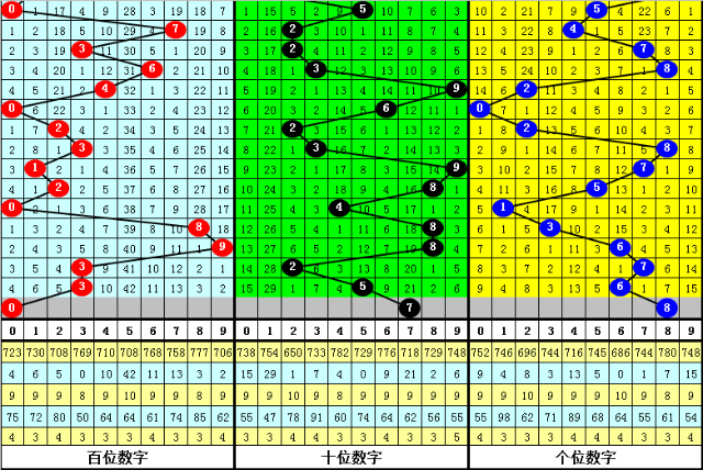 其中,百位号码开出奇偶比为24:21,大小比为23:22,本期注意百位出现偶数号码,一码看好0。