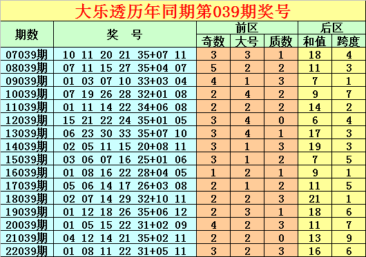 后区和值分析:历史同期奖号中,后区和值奇偶比为11:5,其中偶数和值出现较少,本期适当关注偶数和值回补,参考14。