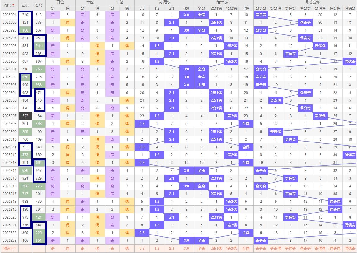 奇偶比例预判 在奇偶比例方面,第323期开出了551奇奇奇的组合,显示出奇数号码的强势。然而,根据奇偶比例的自然平衡原理,偶数号码在第324期有望得到更多的关注。因此,324期的奇偶比例可能为1:2,即偶数号码占据多数。这种预判基于对历史数据的深入分析,以及对奇偶比例波动规律的把握。近十期奇偶比为17:14.关注两偶一奇号码