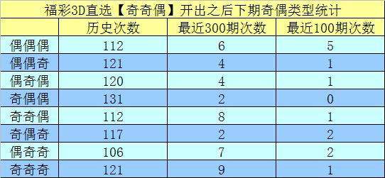 前7次出现奇奇偶类型奖号分别为:710、970、750、314、730、190、932,其下期分别开出奖号:507、959、802、022、665、888、567。