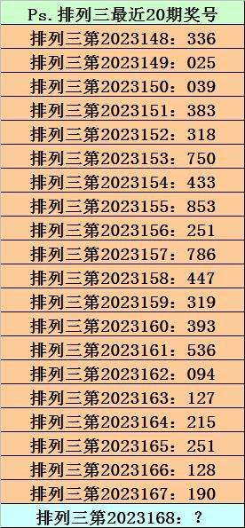 第2023167期排列三奖号为190,历史上该号码组选开出40次,下期奖号分别为:065、121、696、049、454、835、976、053、288、357、070、123、138、678、530、314、358、725、750、753、154、304、925、500、496、279、523、612、180、199、000、383、490、647、257、466、649、763、668。
