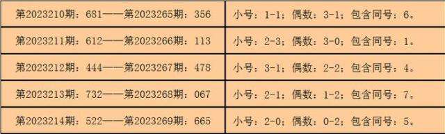 所以,3D第2023215期开出奖号:308,其大小比为1:2,奇偶比为1:2,012路比为2:0:1,与3D第2023270期奖号可能有同号。