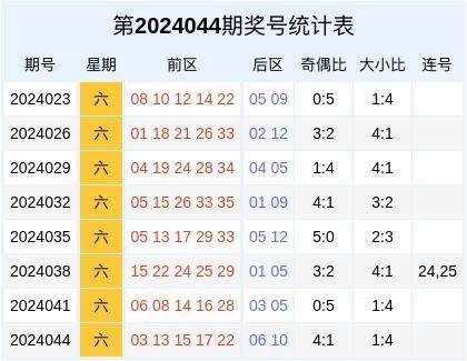 连号分析:上周六没有开出连码,近8周同星期六的奖号数据中,开出连码的概率为12。50%,本周六预测不会开出连码组合。