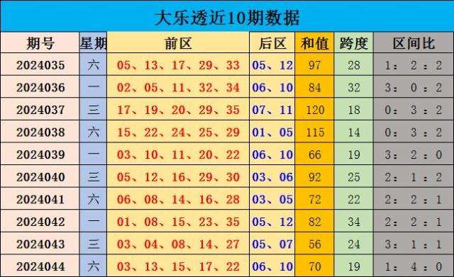 和值分析:上期前区奖号和值70,预计本期和值将会上升,参考和值将会开在85左右。