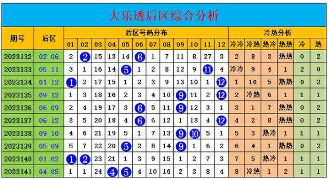 大乐透后区分析: