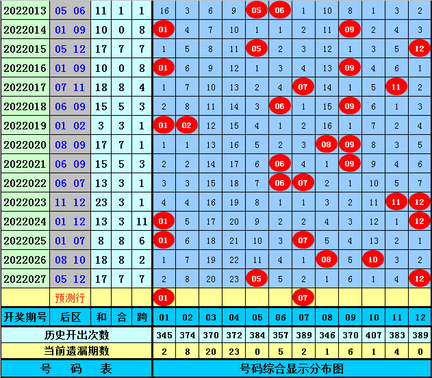 后区分析:上期后区奖号为05+12,最近10期后区奇偶走势为:偶奇→奇偶→偶奇→偶奇→偶奇→奇偶→奇偶→全奇→全偶→奇偶,奇偶总比例为10:10,本期后区注意号码01、02、03、07、12,单挑两码01、07。